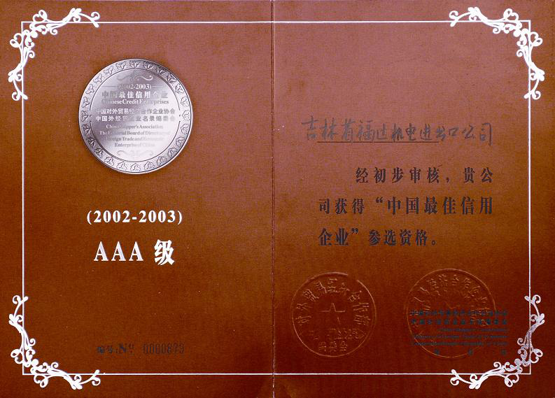 AAA级最佳信用企业